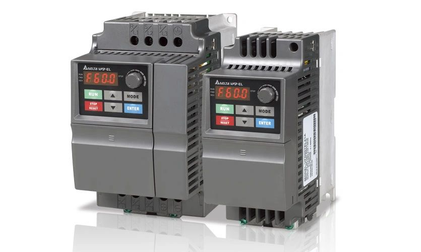 La serie VFD-EL ofrece variadores de nueva generación con múltiples funciones. Tiene filtro EMI integrado, switch RFI, pueden compartir el bus DC para instalación combinada, detección de corriente de alta precisión, protección contra sobrecarga y teclado incorporado.